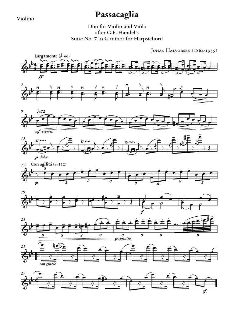 By johan halvorsen, transcription for violin and viola. Sheet music is available for piano, guitar 1, guitar 2 and 1 others with 5 scorings and 1 notation in 4 genres. Loading the chords for 'passacaglia for violin and viola (halvorsen, johan) hayang park(하양 비올라)'. 7 in g minor for harpsichord from the artist johan halvorsen arranged for violin.