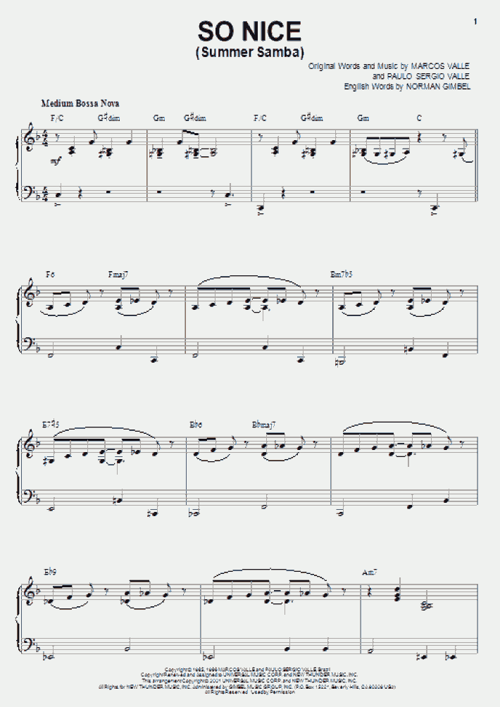 Pictures. Download or order so nice (summer samba) sheet music from the artist astrud gilberto arranged for piano, guitar, voice and more. If you purchased multiple copies, please print all of them.